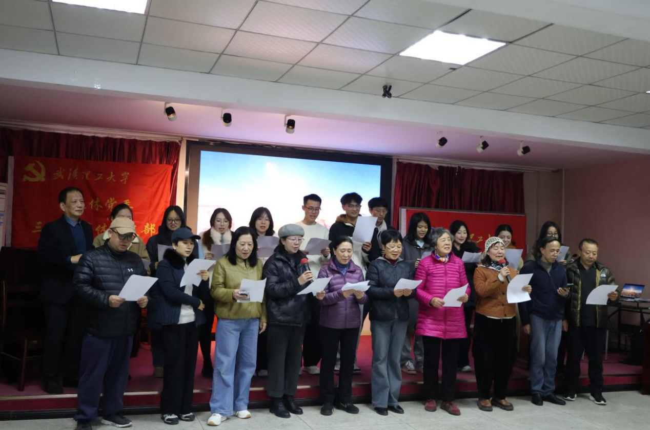 活动分为才艺展演与红歌合唱两个环节,管研2503团支部的同学们精心编排《阳光男孩 阳光女孩》《像你这样的朋友》等歌舞节目,退休教职工深情演唱《我们走在大路上》《贵妃醉酒》《强军战歌》等经典曲目,青春力量与桑榆风采的激情碰撞,不仅展现了历代理工人积极向上的精神风貌,更搭建起了传承交流的桥梁,为活动增添了别样的温度与色彩。最后,全场师生以一曲《社会主义好》将活动推向高潮。