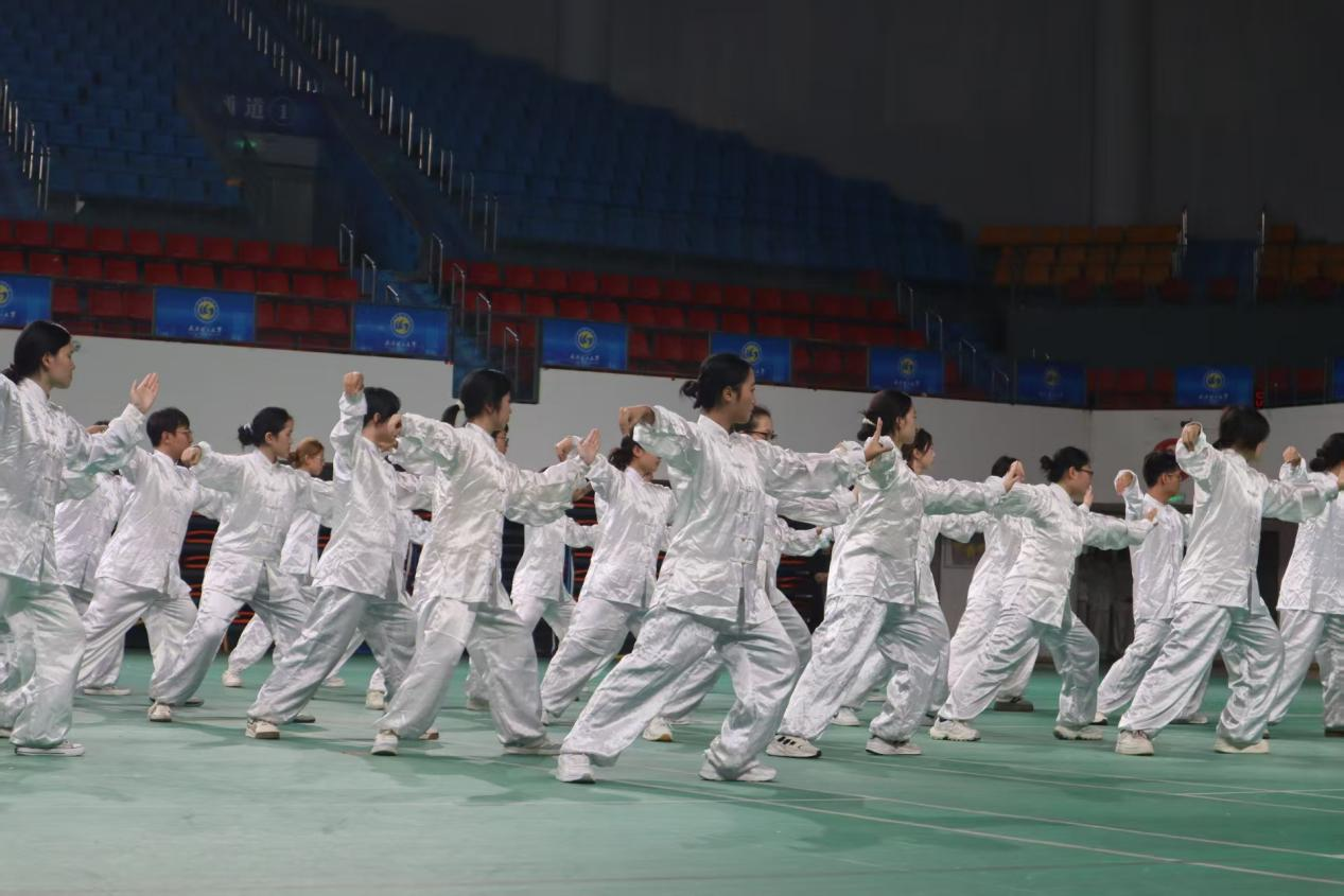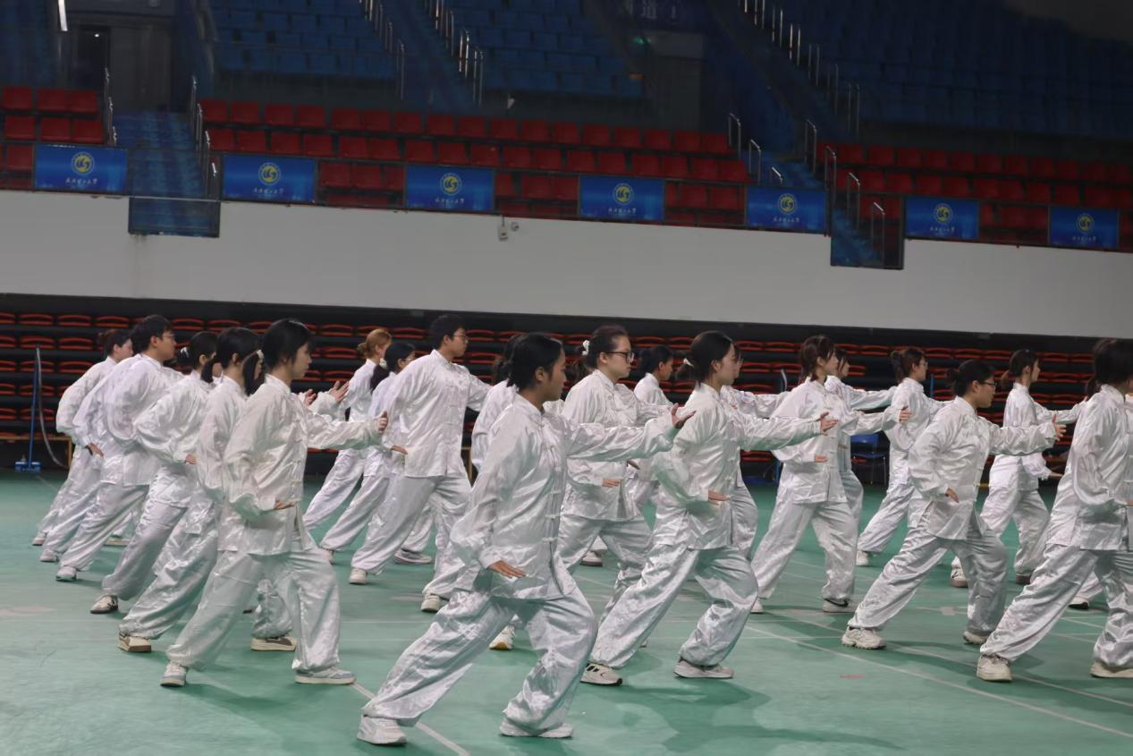 比赛现场,必赢3003no1线路检测中心参赛队员身着统一纯白服装,身姿挺拔如松。伴随着悠扬舒缓的音乐,队员们抬手、转身、推掌、收势,每一个动作都精准到位,既展现了太极拳刚柔并济的独特韵味,又传递出从容沉稳的精神气质。入场环节,队伍齐声喊出“尚管明理,弘商济世”的口号,气势昂扬,瞬间点燃现场气氛,成为赛场上一道亮眼的风景线。