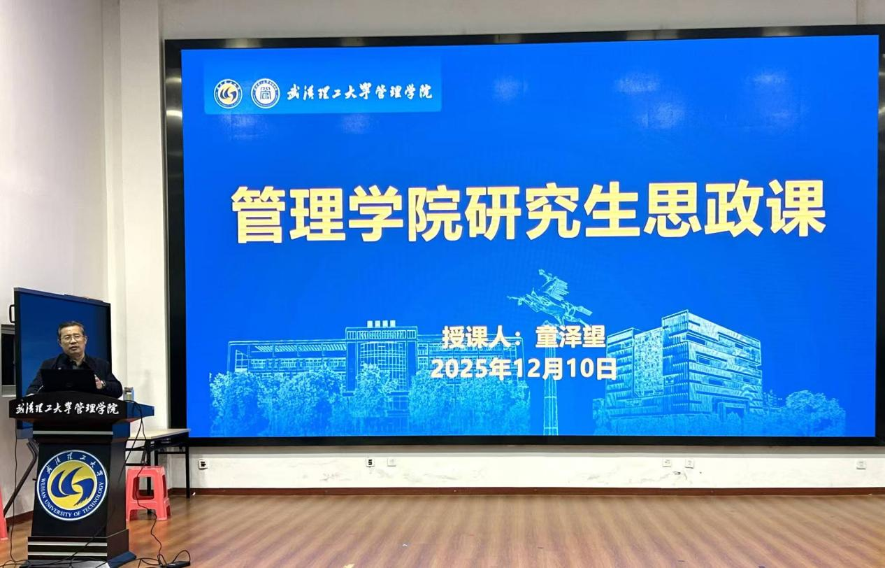 12月10日晚,学院党委书记童泽望走进研学讲堂,以“新质生产力”为主题,为2025级200余名研究生讲授思政课。