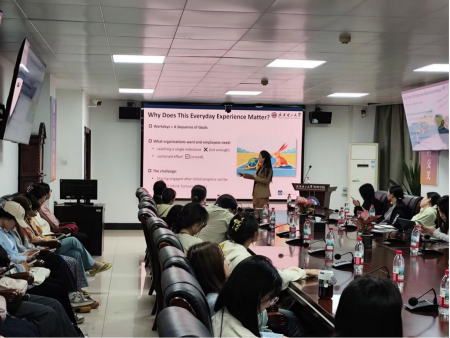 随后,高枫老师基于参加第85届美国管理学会年会的心得体会,重点围绕论文分享、参加国际会议过程中遇到的实际问题与挑战、参会的个人收获与反思这三个方面进行阐述。高枫老师指出,从基于进展的自我调节视角来看,上午工作目标的进展情况会对下午的工作投入产生复杂的影响。这一研究为理解员工工作投入的动态变化提供了新的理论视角,对于企业管理实践具有重要的指导意义。在交流实际问题与挑战环节,高枫老师分享了在国际学术交流中遇到的跨文化沟通、研究方法差异等方面的经验,为在场师生提供了宝贵的参考。同时,她对本次参会的学术收获进行了系统总结,并反思了自身研究的不足之处,为未来的研究方向提供了清晰的思路。