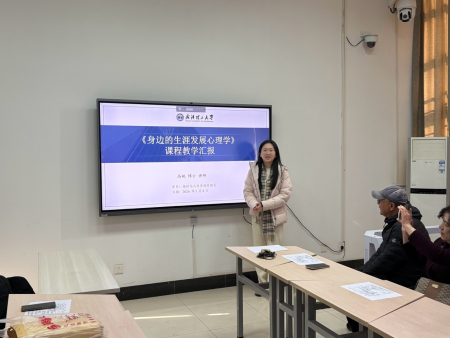 随后,高枫老师围绕课程《身边的生涯发展心理学》进行了教学汇报。高老师从课程定位与教学思路入手,介绍了该课程如何立足学生现实生活,将生涯发展心理学理论与大学生成长需求相结合。通过贴近生活的案例、生动的课堂互动以及循序渐进的教学环节设计,引导学生认识自我、理解环境、规划未来。在汇报中,高老师重点分享了如何通过课堂交流、反思性学习和实践活动,帮助学生提升生涯规划意识与心理调适能力,充分体现了课程的人文关怀与育人价值。